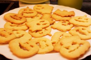 Zum heißen Glühwein/Kinderpunsch passen diese Gruselplätzchen perfekt. Die kleinen Leckerbissen könnt ihr als Fledermäuse, Kürbisse, Geister, Totenköpfe, Spinnen oder auf was ihr sonst noch Lust habt ausstechen. Die Plätzchenausstecher gibt’s in jedem gut sortierten Haushaltswarengeschäft, auf Märkten oder online zu bestellen. Ich habe meine vom Markt auf der Auer Dult bei uns in München.