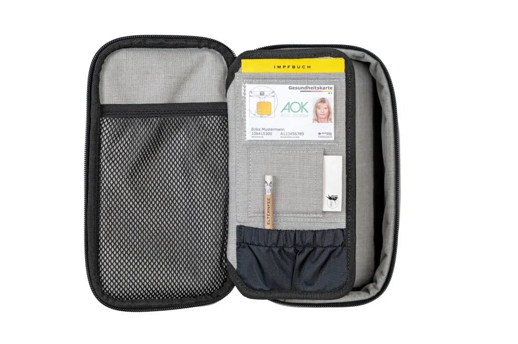 In der Eltern Survival Bag ist ein kleines Basicset enthalten mit ELTERNFEE Lätzchen, Malblock, Stift, Pflasterbox und einer Checkliste. Durch die vorgesetzten Fächer zum Einstecken für die Krankenkassenkarte und das Impfbuch des Kindes, kann hier nichts mehr vergessen werden.