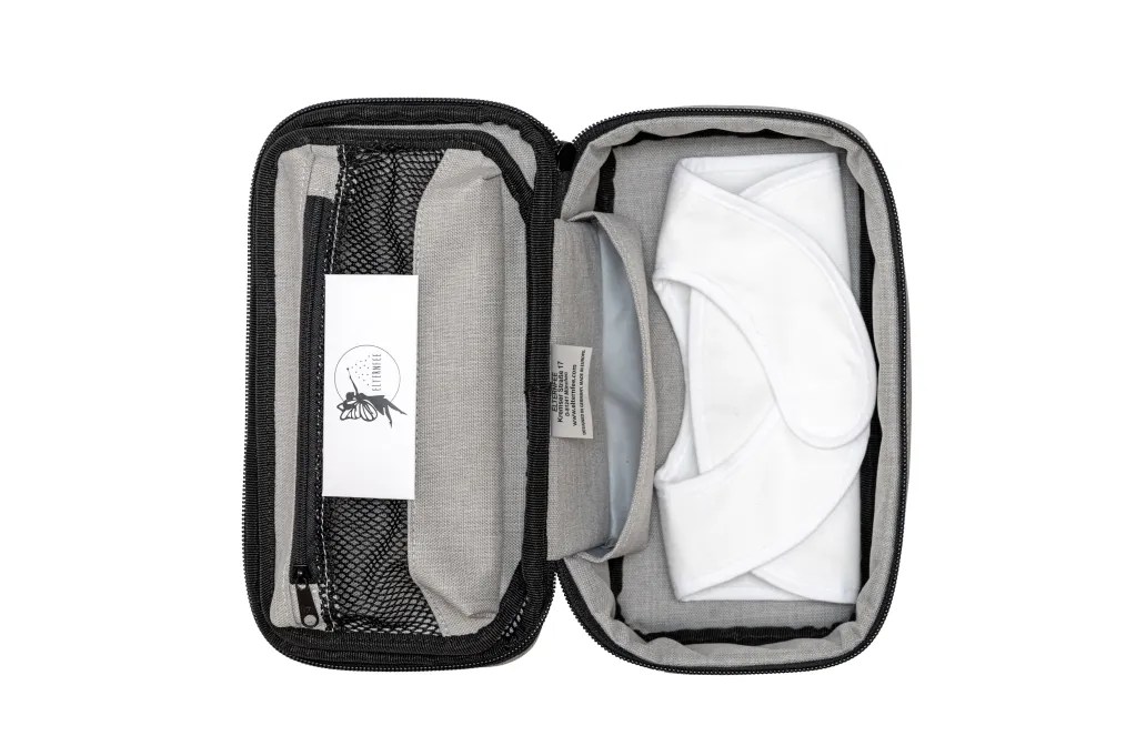 Mit ihren Maßen: Länge 24 cm x Breite 13 cm x Höhe 9 cmund einem Gewicht von ca. 380 g (mit Inhalt des Basicsets/Checkliste) ist sie so groß wie ein doppeltes Federmäppchen. Die Eltern Survival Bag passt in jede größere (Hand-) Tasche / Rucksack oder kann mit der seitlichen Lasche an einen Haken am Kinderwagen schnell eingehängt werden. Es sind vier Farben erhältlich: Grau, schwarz, grün, dunkelblau.