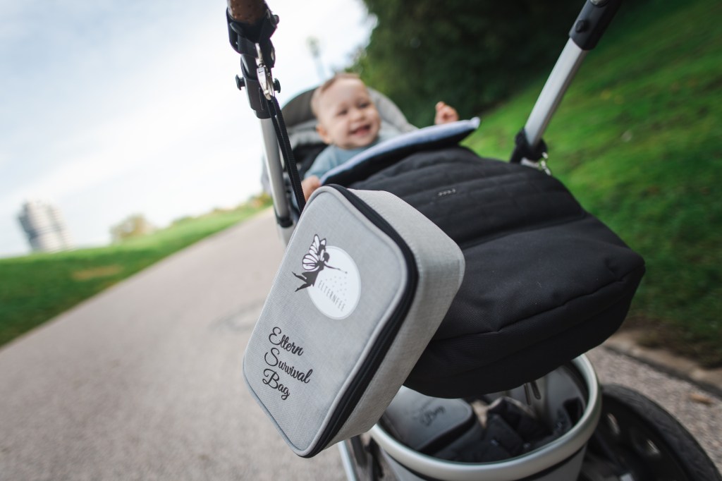 Mit meinem ersten Produkt, der ELTERN SURVIVAL BAG möchte ich möglichst viele Eltern/zukünftige Eltern unterstützen auf dem Weg ins Familienleben. Die kompakte Tasche ist der Retter für Unterwegs – bei Familienausflügen alles gut sortiert, sofort griffbereit mit dabei.